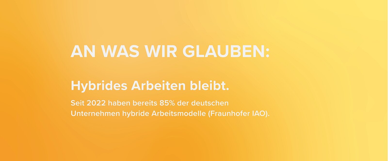 Dabei im Zentrum: Das Office. Ja. Genau. Richtig gehört. Wir glauben zwar fest daran, dass hybrides Arbeiten gekommen ist, um zu bleiben. Aber wir sind gerade deswegen der Überzeugung, dass das Office der Zukunft als physisches Herzstück des Unternehmens mehr denn je benötigt wird.